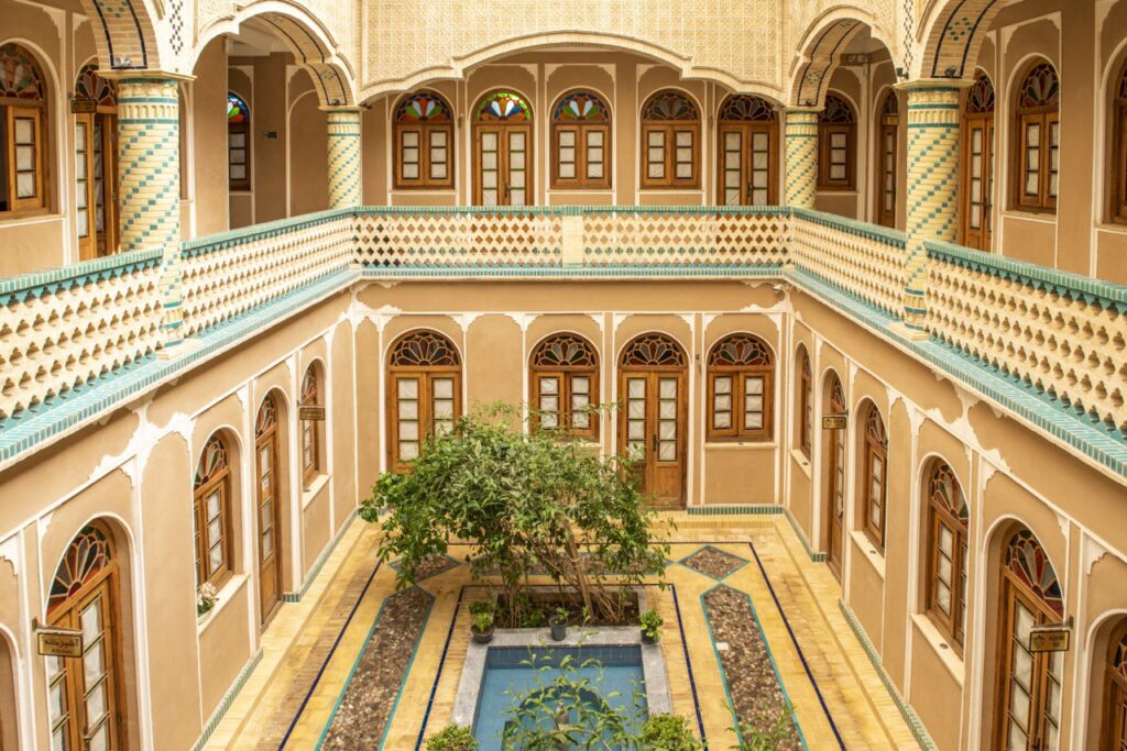 معماری جذاب،محوطه ای با حوض کوچک و پنجره هایی باشه شیشه های رنگی و تالار سنتی تجربه ی اقامت در فضایی سنتی همراه با آرامشی بی نظیر را برای مهمانان خود فراهم میکند.